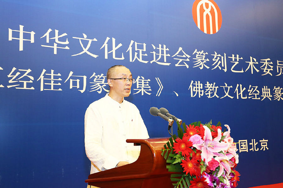 中书协篆刻艺术委员会秘书长、《中国书法》主编朱培尔先生作了重要发言。方寸之间,当可驰骋,中华文化促进会成立篆刻艺术委员会,把民间散落的篆刻艺术点变为面,有非常重大的意义。