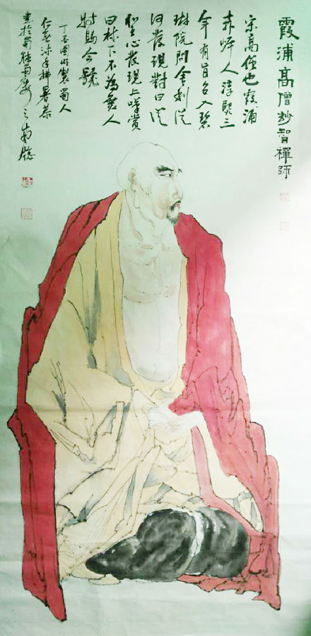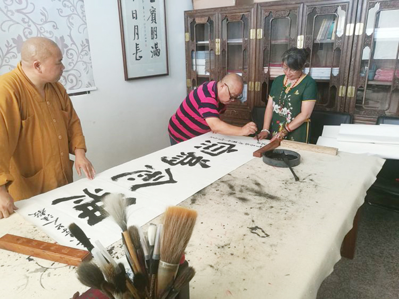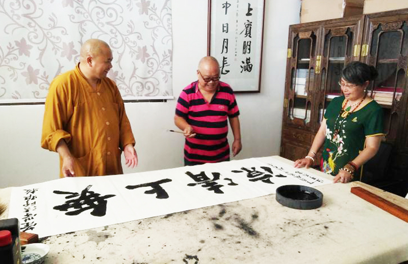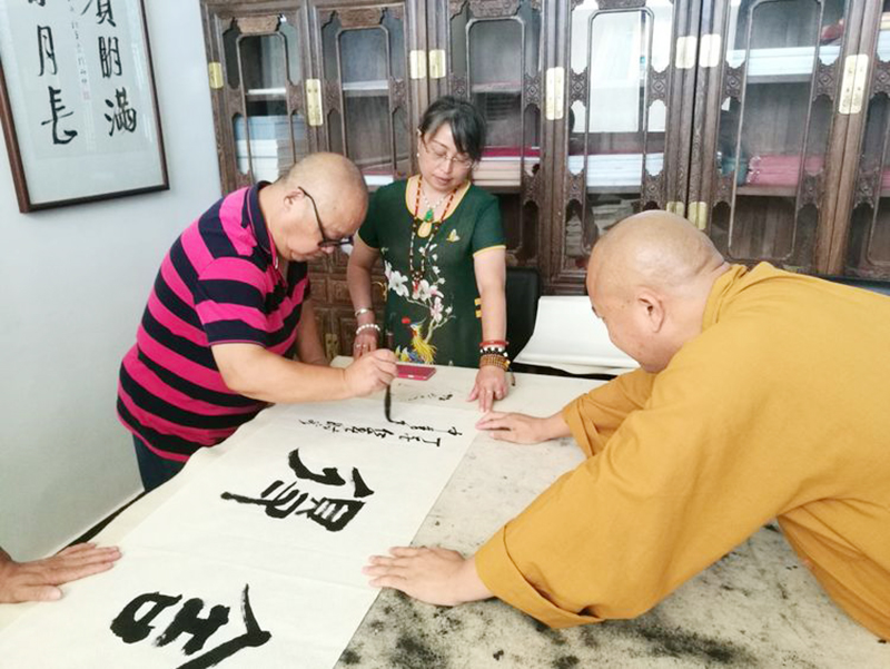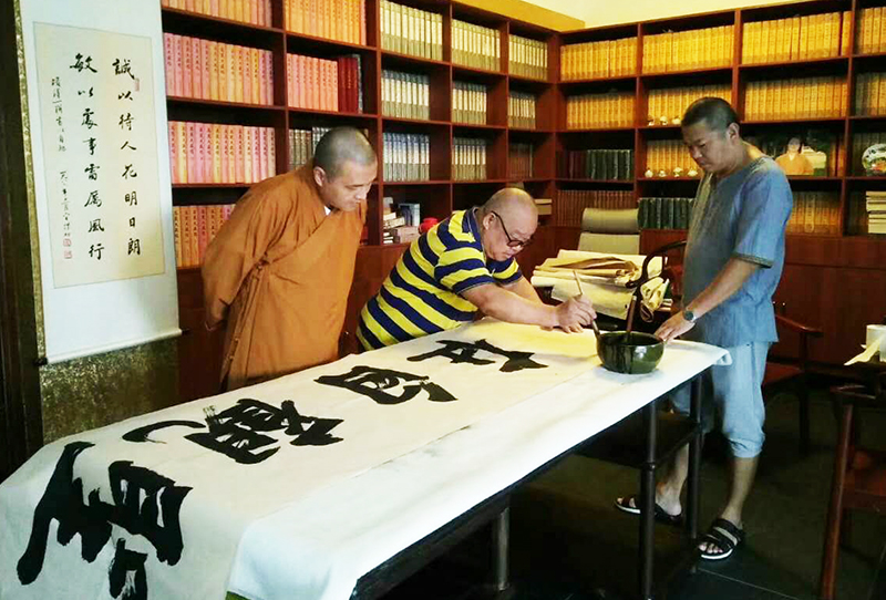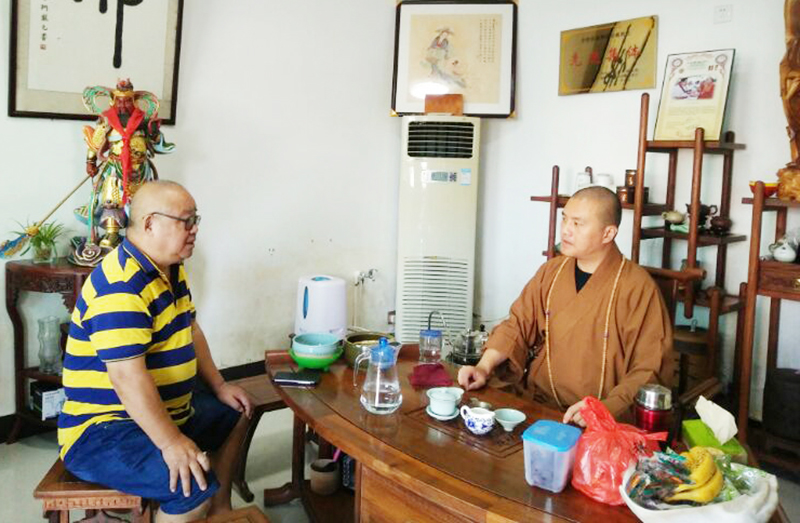 19、20日在霞浦地藏寺与满深住持亲切会面。满深大和尚道行高洁,弘法利生。毕业于斯利兰卡佛学院,受香港永惺法师法脉,为天台临济法脉。地藏寺始建于后周广顺二年(952年),2005年礼请满深为住持。寺貌巍峨、庄严。十九日为地藏王菩萨圣诞,地藏王曾言“地狱不空,誓不成佛”,此石破天惊之语,昭显亘古。闽东佛法兴盛,居士如织。应满深大和尚嘱,国明、杨涛为寺作祖师像、花鸟画。应满深大和尚嘱为印尼侨界居士书十余纸。