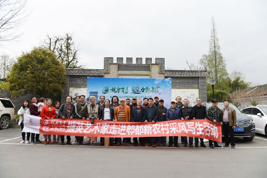 春光明媚,微风轻拂,田间、村舍散发着淡淡的各种花香。古朴的院落、人流如织的农庄,勾勒出一派欣欣向荣的景象。巴蜀撷英书画院“画说乡村,魅力郫都”采风写生活动就是在这个美丽的三月,美丽的郫都举办。3月17——18日,巴蜀撷英书画院艺术家及特邀艺术家30余人,来到郫都区唐昌古镇及先锋村、战旗村,进行了为期两天的采风写生活动。