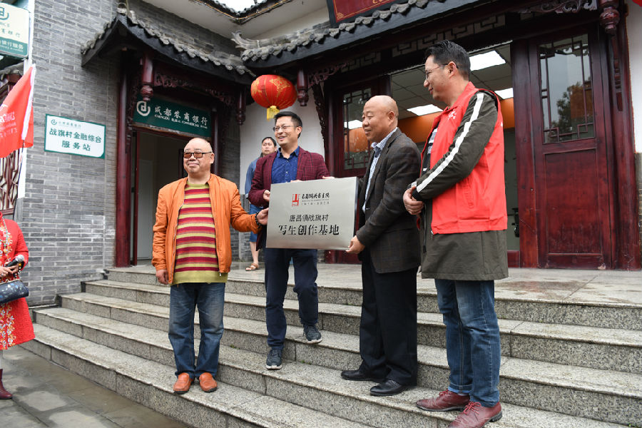 写生活动中,战旗村村委会和巴蜀撷英书画院达成协议,并举行了巴蜀撷英书画院战旗村创作写生基地挂牌仪式。战旗村将作为巴蜀撷英书画院写生创作基地,为艺术家们写生创作提供便利条件。战旗村村委会高书记及巴蜀撷英书画院理事长路建东、院长肖炳坤、学术顾问赵仁春出席了授牌仪式。战旗村村委会高书记代表战旗村村民对艺术家们的到来表示热烈欢迎,欢迎艺术家们常来采风写生,创作出更多反映新时代新气象新农村的好作品。肖炳坤院长代表巴蜀撷英书画院做了发言。