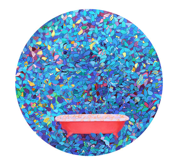 王玲云 带粉色桃子的浴盆 油画 60x60CM 2018年