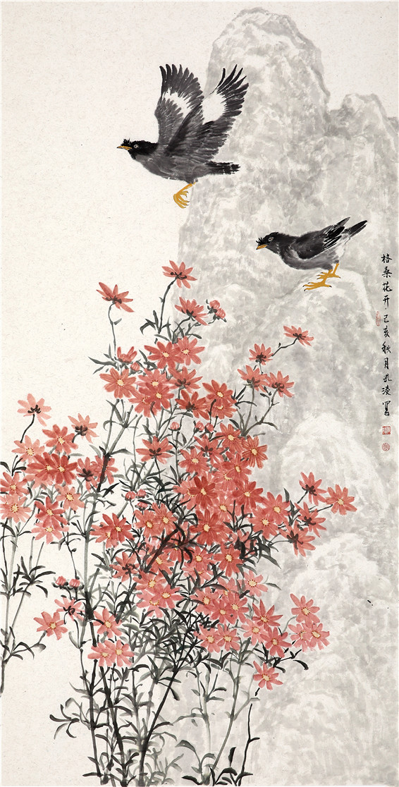 所谓欣喜,是孔淩以她十几年默默的探索和追求所呈现出来的工笔花鸟画,在当今百花齐放的花鸟画坛上,终以素静、雅意、清冷、自然之风格独领风姿,且赢得观众的喜爱和行家的认同。