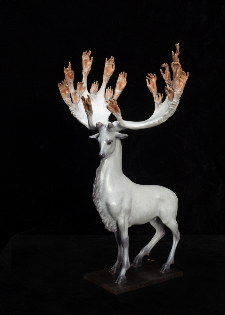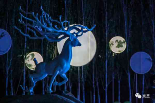 以韦冬作品所体现的,实时与人、环境或数据进行关联交互的“动态”表达,在科技与艺术交融的过程中,推进人工智能技术与艺术产业深度结合。这次“奇幻光影森林”的项目就是把这些具有神性与东方哲学的大型雕塑,充分的与环境、游客之间能够产生互动的可连接交互的内容,当游客走过或者是环境发生变化之后,就能够与之产生交流并随之产生变化。园中飞舞的鹿角、粒子的灯光等等……,这些都是未来科技与大众装置艺术呈现的是绝佳飨宴。