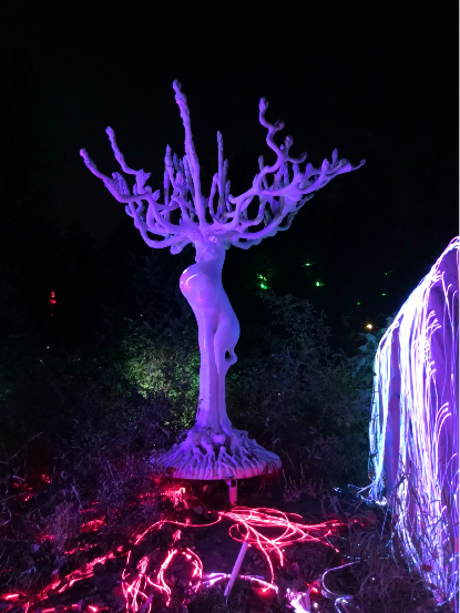2019年中国北京世界园艺博览会于北京延庆正式开幕。夜晚科技园林示范“奇幻光影森林”分外耀眼。 “奇幻光影森林”以韦冬大型雕塑为展场主秀,虚拟影像与人机互动的体验,让国际游客对这场科技文化与自然景观相融合的视觉盛宴赞叹不已。