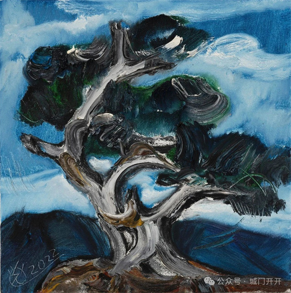 1985年,程晓光再次到广州美术学院深造,毕业后虽然又回到了湖南,但是,随着其视野的不断打开,以及绘画语言的日益成熟,他已经放弃地域艺术家的标签,而是把自己放在一个更大的美术史逻辑之中,立志要在区域、文化和艺术风格等各方式寻找突破。这之后,程晓光开始不断出走,四处写生,其足迹不仅遍及三湘四水,而且还游历了许多名山大川。程晓光的意象油画,就是在这一时期建构起来的。也就是说,他的意象油画不是概念上的风格表达,而是通过长期旷野写生,不断与自然的对话中提炼而来。因此,程晓光对意象油画的理解,才真正与中国传统山水画的写意精神,即所谓“气韵生动”与“应物象形”等内涵联系起来,同时又汇通西方的表现性语言,共同指向了物我交融、天人合一的超然境界。