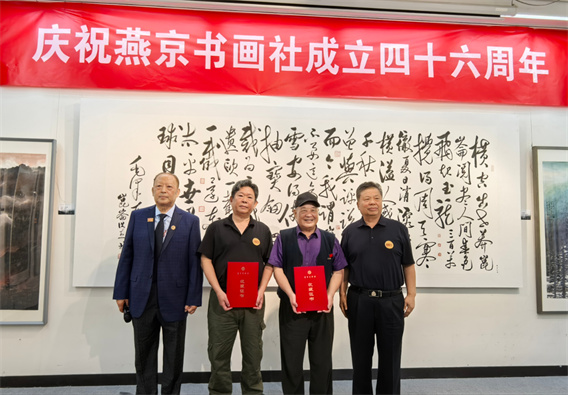 现场〡燕京书画社石占成社长向李洪海、马万国颁发收藏证书