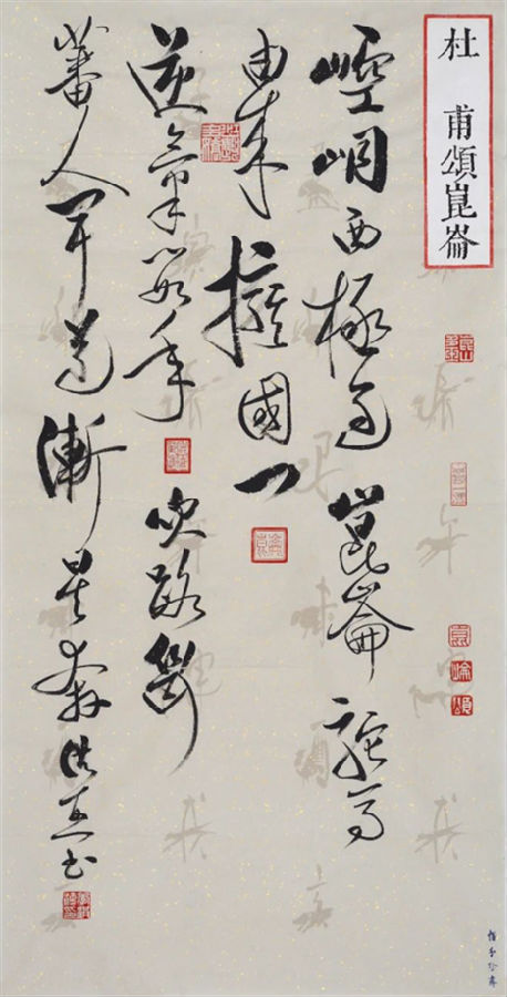 李洪海的书法艺术根植传统而风貌独具。其书风得益于启功先生亲授,经数十年淬炼,形成了“内紧外拓、疏密相间、骨势秀逸、体势俊美”的鲜明特色。他深谙“诗书画印”相融之道,尤其在梅兰竹菊“四君子”题材创作上锐意探索,赋予传统意象更深邃的精神内涵,作品兼具古典风骨与现代审美意趣。其书法苍劲朴拙,严谨精到,追求厚重、苍劲、飘逸、洒脱的书风,古意盎然中透射个性锋芒,广受推崇。本次昆仑颂展览,李洪海精选从古代屈原、刘向、李白,到当代毛泽东、陈毅等开国领导人吟咏昆仑的壮丽诗篇进行创作,并特别为展览治“昆仑印”点睛,通过书法独有的韵律美淋漓书写出昆仑山的雄浑气魄与不朽诗魂。