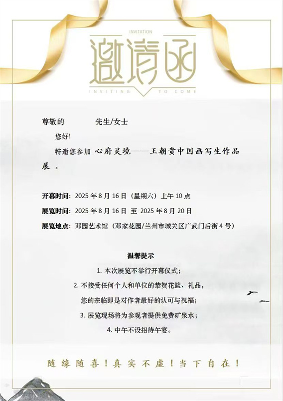 心府灵境——王朝贵中国画写生作品展,将于2025年8月16日上午10点在兰州邓园艺术馆开幕,此次总计展出作者近六年来在全国各地写生的精品80余幅。
