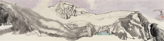 韩一笔下的大山,以苍劲雄健的笔力勾勒峰峦,墨色凝重饱满,线条刚硬如铁铸就,内里蕴含着一股蓄势待发的蓬勃力量,几欲破纸而出。细察山体构造的独创用笔——仿佛执铁帚横扫于纸面,坚定的勾勒不避其涩中之锐——使得山石表面呈现出纽带般的突弩张力,处处彰显着一种沉雄强韧的“骨相”之美。