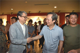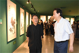 全国政协原副秘书长张秋俭,国务院原副秘书长郭玮,原卫生部副部长陈啸宏,中国书法家协会原副主席申万胜,北京市原副市长孙安民,中国美术家协会副主席、中国国家画院院长刘万鸣,书画频道中国书画艺术研究院院长、中国美术家协会原分党组书记、驻会副主席徐里,中国电视艺术家协会原分党组书记、副主席张显,中国画学会会长田黎明,北京画院原院长王明明,中国美术家协会副主席马锋辉、贾广健,北京社会科学院原院长王学勤,中央美术学院原副院长董长侠,中国艺术档案学会会长陈秀华,河北省军区原副司令王志国,著名书画艺术家莫晓松、李春林、范存刚、唐辉、张复兴、李庚、史国良、孔紫、王仲、王天胜、郜宗远、乔宜男、梅启林、尹毅、梁永琳、李洋、李爱国、林容生、苗培红、李乃宙、邓远坡、于光华、戴顺智、傅以新、何家安、萧玉田、郭宝君、马海方、姚大伍、陈鹏、袁学军、马硕山、王辅民、胡宝利、陈克永、陈良敏、郭玫孮、杨华山、王珂、魏广君、于恩东、彭利铭、杨广馨、王永亮、孙震生、刘守信、王利军、唐建、庄小雷、金连经、秦永忠、丛薇、胡萍、杜浩、李雪松、王一帆、任赛、左文辉、常欣、崔东湑、赵文江、娄述德、魏运成、范新国、包洪波、李汉平、王志纯、老圃、付振宝、徐沛君、柴京津、段铁、彭华竞、高维洲、卿建中、赵青仲、阚爱萍、盛鸣、张金卫、石占成、张泽石、李明、曾迎春、徐冬青、胡美雪、王瑛、闫新生、邱雷、王婧、王卫平、唐朝轶、刘金党、雷苗、曹环义、徐冬冬、韩少玄、李德良、于闯、张英才、李学功、孙宏伟、谢山河、苏蔚红、王旭、周同祥、许斌、海德恕、艾国、马跃宗、崔志斌、陈北文等,特别支持的单位代表北京国盾卫士保安服务有限公司董事长邢利强,河北顺府文化传媒董事长闫国强,以及书画频道董事局主席王平,书画频道总裁李培元百余位嘉宾出席展览开幕式。开幕式由著名主持人、朗诵艺术家陈铎主持。