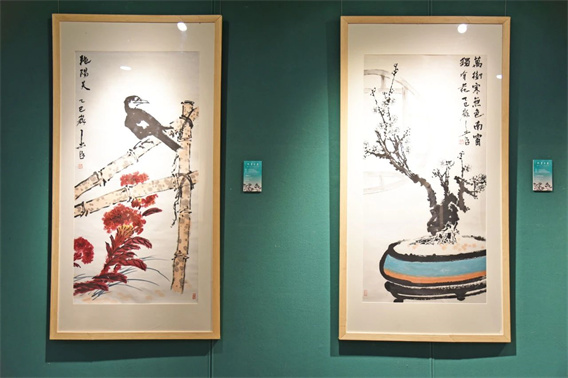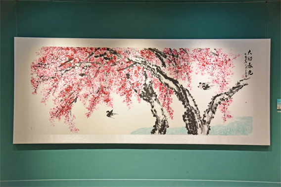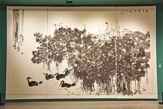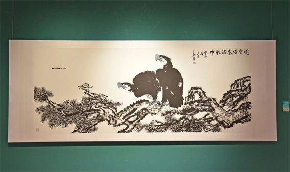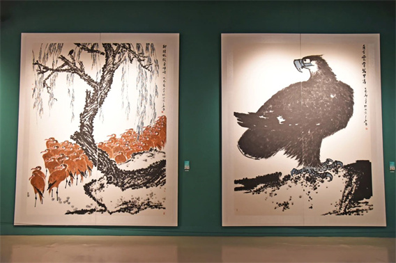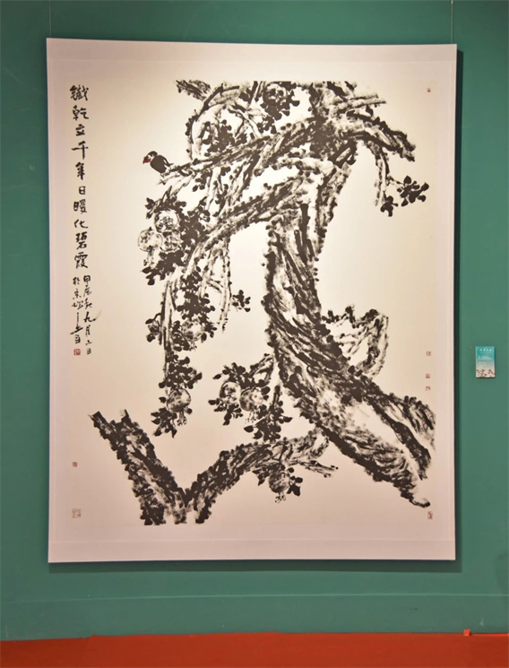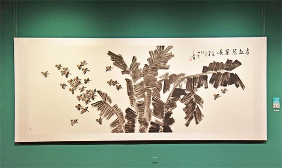 本次展览荟萃邢少臣艺术探索的精华之作。《万树寒无色》《书香图》等作品承续文人雅趣,尽显传统题材的隽永高致;《孤帆远影》《插了梅花就过年》则敏锐捕捉时代气息与生活意趣,赋予水墨鲜活的当代生命力;《翱翔万里来去千年》《大好春色》《雀起蕉叶长》等多幅鸿篇巨制,充分彰显艺术家驾驭大尺幅、营造磅礴气象的深厚功力和艺术胆魄。这些作品,或以精妙笔触抒写生活情致,或以雄浑墨气直抒壮阔胸襟,或对经典题材进行创新诠释,构建出既根植传统文脉、又激荡现代精神的雄浑苍茫之境,有力印证着中国画大写意艺术在当代蓬勃发展的无限可能。