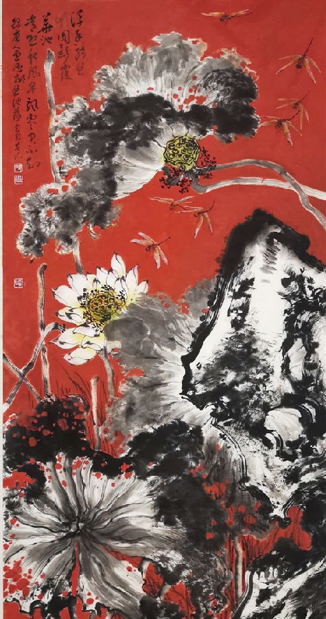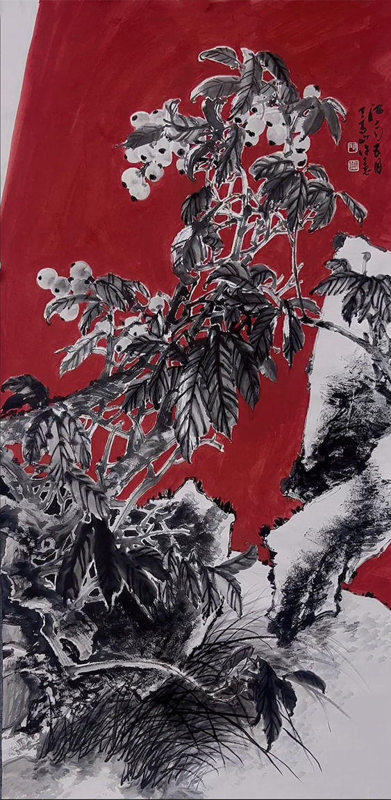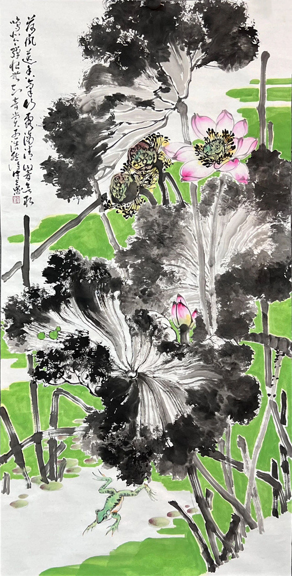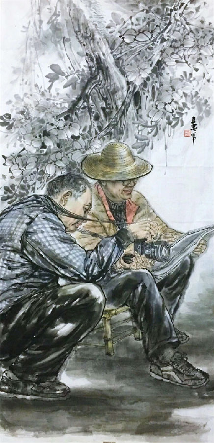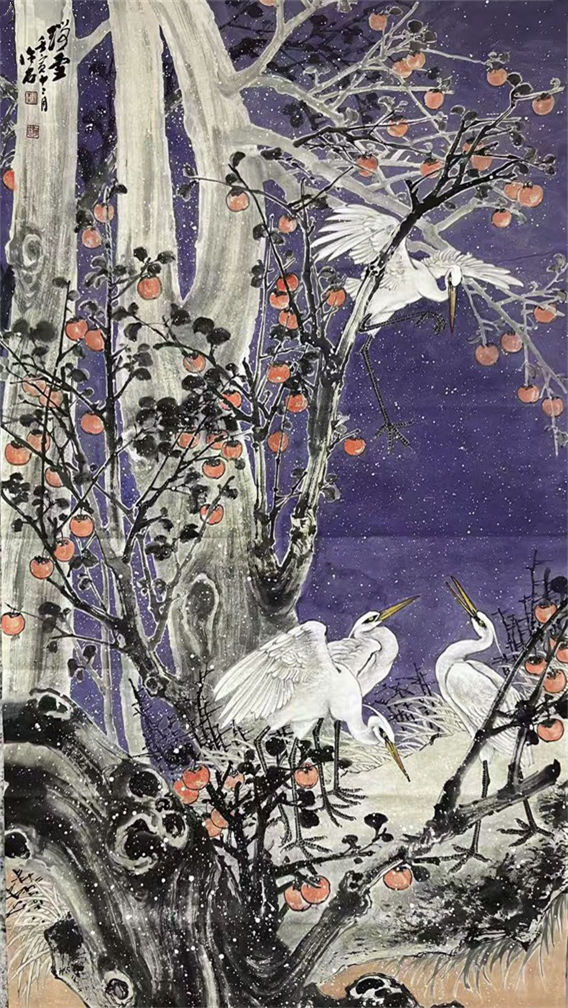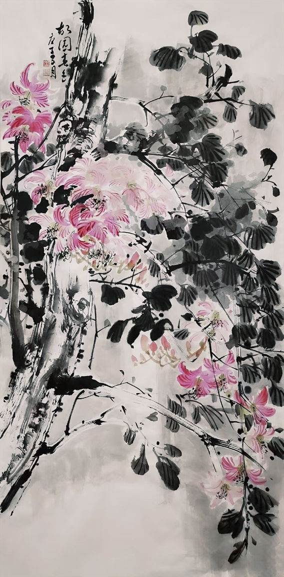 教学与创作并行的日子里,他始终保持着近乎虔诚的刻苦。每日沉浸于笔墨世界,在教导学生的同时,也在持续精进自我。他笔下的花鸟,大胆汲取西方色彩与造型精髓,将绚丽斑斓融入传统水墨,构图新颖灵动,画面鲜活明亮,予人耳目一新之感。人物画作同样别具匠心,以独特的艺术语言传递深刻思考,尽显个人风格。