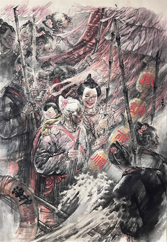 本次画展中大多是乡愁型作品,意蕴悠长、构成严谨、就地取材,描绘的生活场景充满故土气息,值得细细品读、鉴赏。在快节奏的时代脚步中,负重的身心需要慰籍,心灵需要滋养,灵魂更需要有个安放之所,都可以在展出的作品中寻找、定位。本次展出的作品内容使人似乎在一定的节日节点上从城里回到了家乡,回到了生我们养我们的那片朴实的土地上,去和乡亲对话、倾诉、共情。