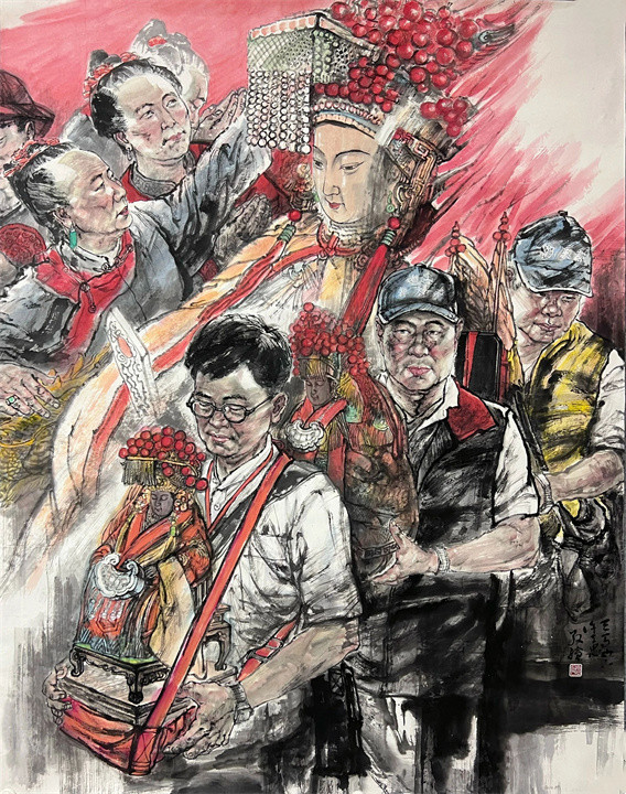 人物画画家,大都内心赤子诚挚、怀柔且慈悲,也都有一份魂牵梦萦的乡愁情结,他们与所处生活环境下的人间烟火、世间百态、酸甜苦辣零距离接触,这些感受极易触动他们创作的心灵。许立忠画家凭借自身对史学的博览和对现状的勾兑,习惯性体味洞察思辨,再一览无余的八面出锋进行刻画彰显,于是作品中的灵魂都是响亮的载体重现。