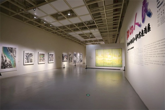 “绘:诗意江山”中,何韵兰探索水墨与综合材料,描绘《洪荒之力》《生命之源》;张雷平融合线条与墨韵,刚柔并济;傅益瑶以海外视角再现唐诗宋词中的江山;胡明哲的岩彩肃穆纯净;山丹的版画融合自然与想象;张弛以南极创作为山水画注入新意;李江峰、刘丽萍、孙肖嘉、毛冬华、刘锐、周胤辰皆以不同方式颂咏祖国的大好山河。