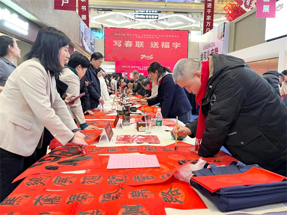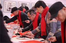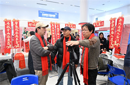 笔会环节将活动推向高潮。主会场内嘉宾云集,书画家、顾客与艺术爱好者齐聚一堂,赏佳作、写春联、送福字,现场洋溢着喜庆祥和的新春气氛。近两百位书画家挥毫泼墨,一幅幅春联、一个个福字满载祝福,传递至顾客手中。各分会场同样气氛热烈,墨香四溢,吸引众多群众参与。