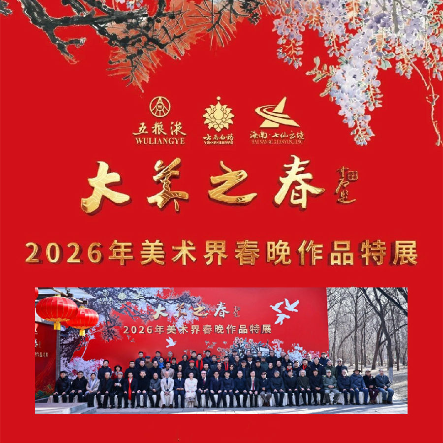 岁聿云暮,春祺将至,当二月的和风轻叩新岁门扉,2月3日,“大美之春——2026美术界春晚作品特展”在书画频道美术馆华彩启幕。本次雅集由书画频道、中国国家画院、中国艺术档案学会共同主办,书画频道中国书画艺术研究院协办,并获得宜宾五粮液股份有限公司、云南白药集团、海南·七仙云境康养基地联合冠名。展览中,近百幅凝结传统墨韵与时代气象的书画力作如约绽放,以笔墨为桥、丹青作舟,邀约四海共赏艺术春色。