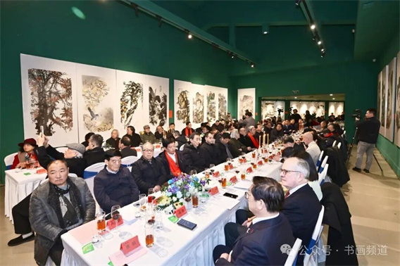 中国美术家协会原分党组书记、驻会副主席、书画频道中国书画艺术研究院院长徐里,中国国家画院原院长、书画频道中国书画艺术研究院副院长卢禹舜,法国前驻华大使、巴黎国际艺术城委员会主席顾山,中国美术家协会副主席、书画频道中国书画艺术研究院研究员祁海峰,中央美术学院教授、书画频道中国书画艺术研究院艺术顾问张立辰,研究员与出席艺术家郭石夫、张复兴、牛克诚、孔紫、丁杰、徐惠泉、吴团良、邢少臣、邓远坡、孔维克、王学辉、梁时民、阮江华、徐恒、秦建新、刘海勇、崔进、萧玉田、李伟、梅启林、陈琳、魏怀亮、陈鹏、马硕山、庄毓聪、李晖、杨东平、郭玫孮、陈良敏、高卉民、王正良、张伟平、刘守信、陈克永、张清智、胡宝利、张福有、张剑、王新伦、安玉民、王巍、黄伯君、刘立勇、陈昭、邱佳铭、王赫赫、王跃奎、盛寿永、韩红路、张广志、马明耀、刘扬、易峰、于航、李晓明、孟庆占、杨若云、左文辉、臧家伟、张泽石、刘金党、刘少白、安泽、李佳妮等,长江(中国)发展股份有限公司董事长张青,法国温州商会会长李云亭,白药集团北京公司总经理杨博英,五粮液集团融媒体中心项目负责人李多,海南金贝岭置业有限公司总经理杨升卫,山东大易文化发展有限公司总经理邱方舜,海南·七仙云境康养基地项目营销副总经理安少谦以及书画频道董事局主席王平、书画频道总裁李培元等百余位嘉宾出席活动。