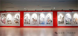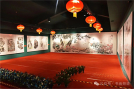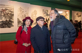展厅中,郭怡孮、郭石夫、徐里、贾广健、刘万鸣联袂创作的11米巨制《和平颂》气势恢宏,格外引人注目,苍松、禽鸟等吉祥意象勾勒出一派和美壮丽的天地大观,昭示着盛世升平的恢弘气象。
