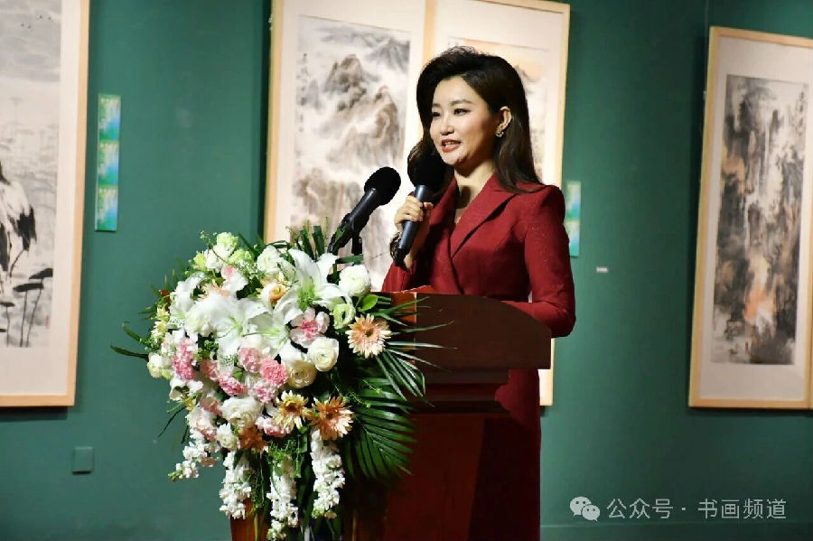 刘君作为参展艺术家代表致辞,她表示此次展览以国画为桥,不仅展现新时代女性艺术家的风采和担当,也在春日的生机中传递着艺术的温暖与力量。